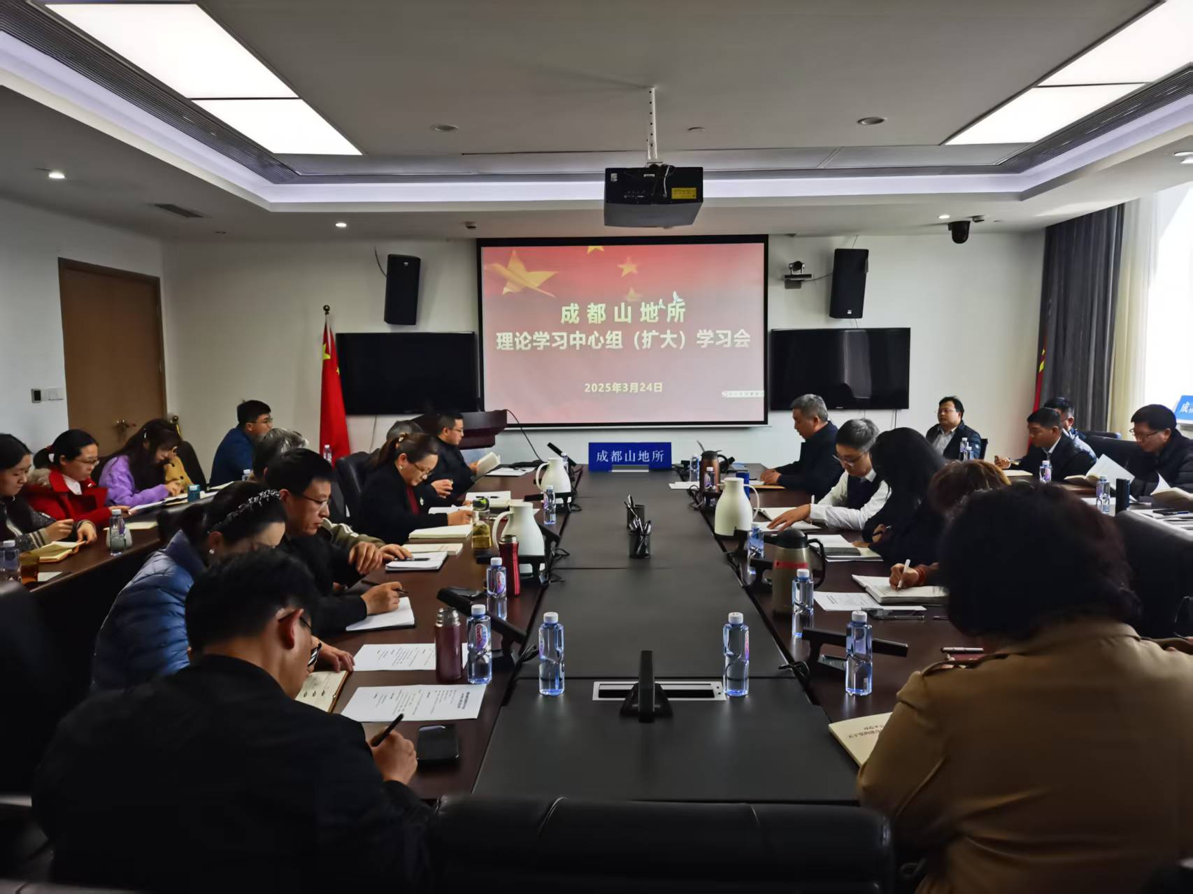 3月24日,成都山地所召开党委理论学习中心组2025年第1次学习(扩大)会,所领导班子成员、党委委员、纪委委员、管理及业务部门负责人、党支部(总支)书记副书记等参加会议。党委书记、副所长谭多财主持会议。