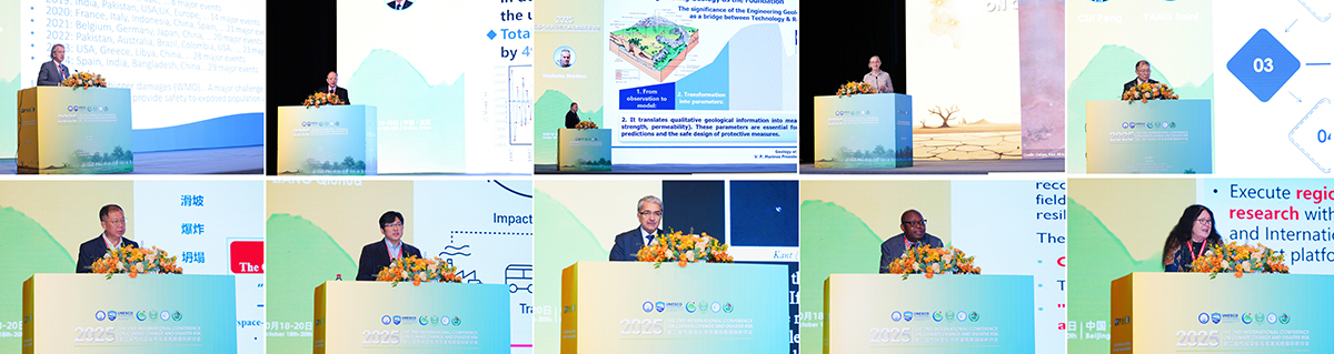 大会特邀Philippe Gourbesville、中国科学院院士夏军、Vasileios Marinos、中国科学院院士崔鹏、中国工程院院士岳清瑞、Jenty Kirsch-Wood、英国皇家工程院院士梁秋华、欧洲科学院院士lsmail-Zadeh Alik、世界工程组织联合会工程能力建设委员会主席Martin Manuhwa、联合国教科文组织前自然科学助理总干事Gretchen Kalonji等作了大会特邀主旨演讲,围绕气候变化对自然灾害的影响、城市安全风险、水资源管理、韧性创造价值与工程韧性、减灾国际合作与风险管理等主题分享了研究进展及前沿动态,进一步强调了增强社会韧性在应对全球变化与灾害风险中的重要性。梁秋华、lsmail-Zadeh Alik、巴基斯坦地理协会主席Atta ur Rahman、Philippe Gourbesville共同主持了主旨演讲环节。