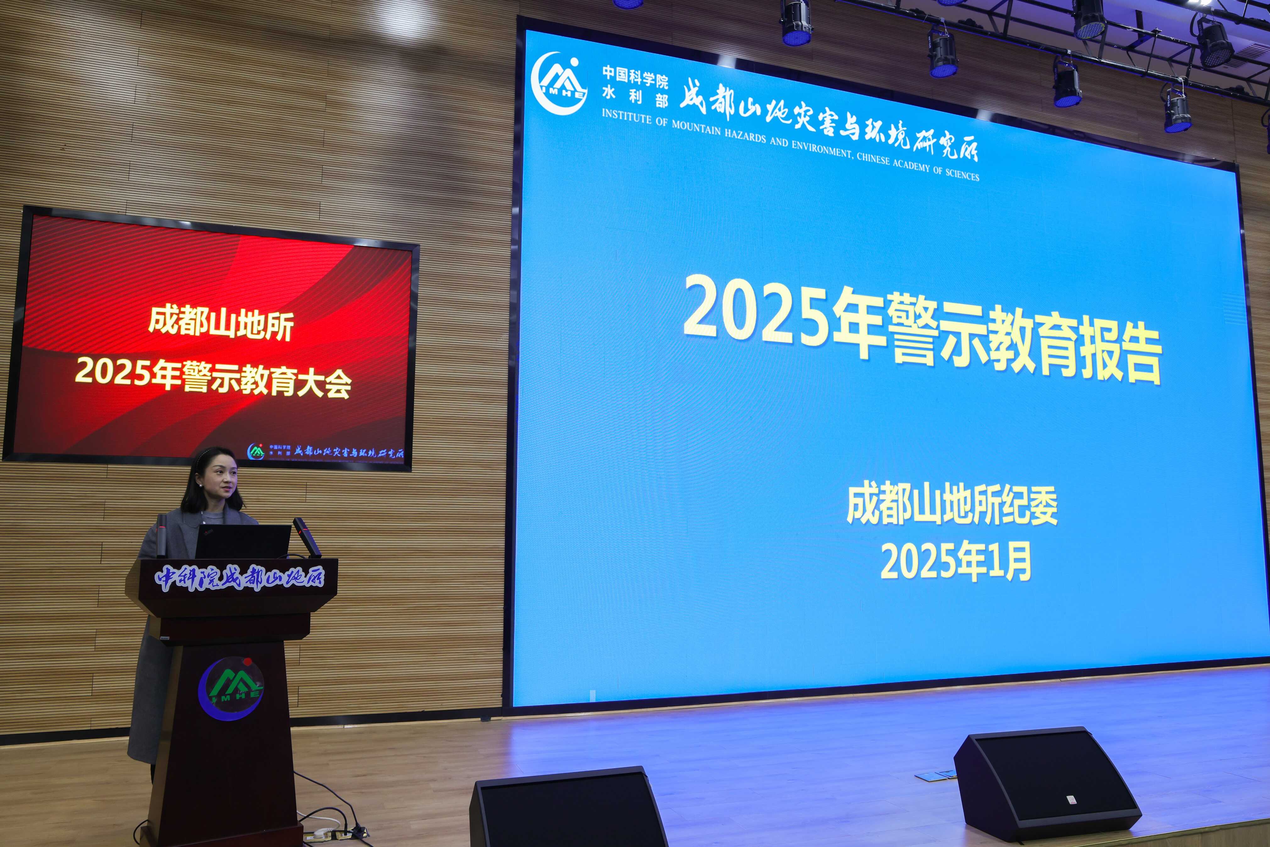 1月22日,成都山地所组织召开2025年全所警示教育大会。所长文安邦,党委书记、副所长罗晓梅,副所长苏立君出席会议。会议由罗晓梅主持。全所干部职工210余人参加了会议。