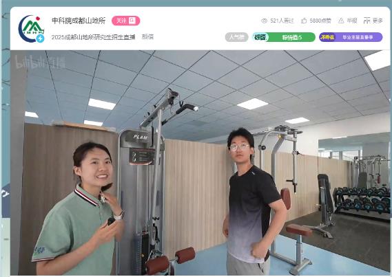 科研与生活的平衡同样是本次直播的亮点。健身房内,青年科研人员挥汗如雨的矫健身影,传递出积极向上的精神风貌;温馨整洁的博士楼宿舍、设施完备的中国科学院大学成都学院教学区与生活娱乐区,展现出研究所为青年学子成长提供的坚实保障。七轮惊喜抽奖贯穿直播全程,丰厚奖品承载着成都山地所对考生的满满期许。