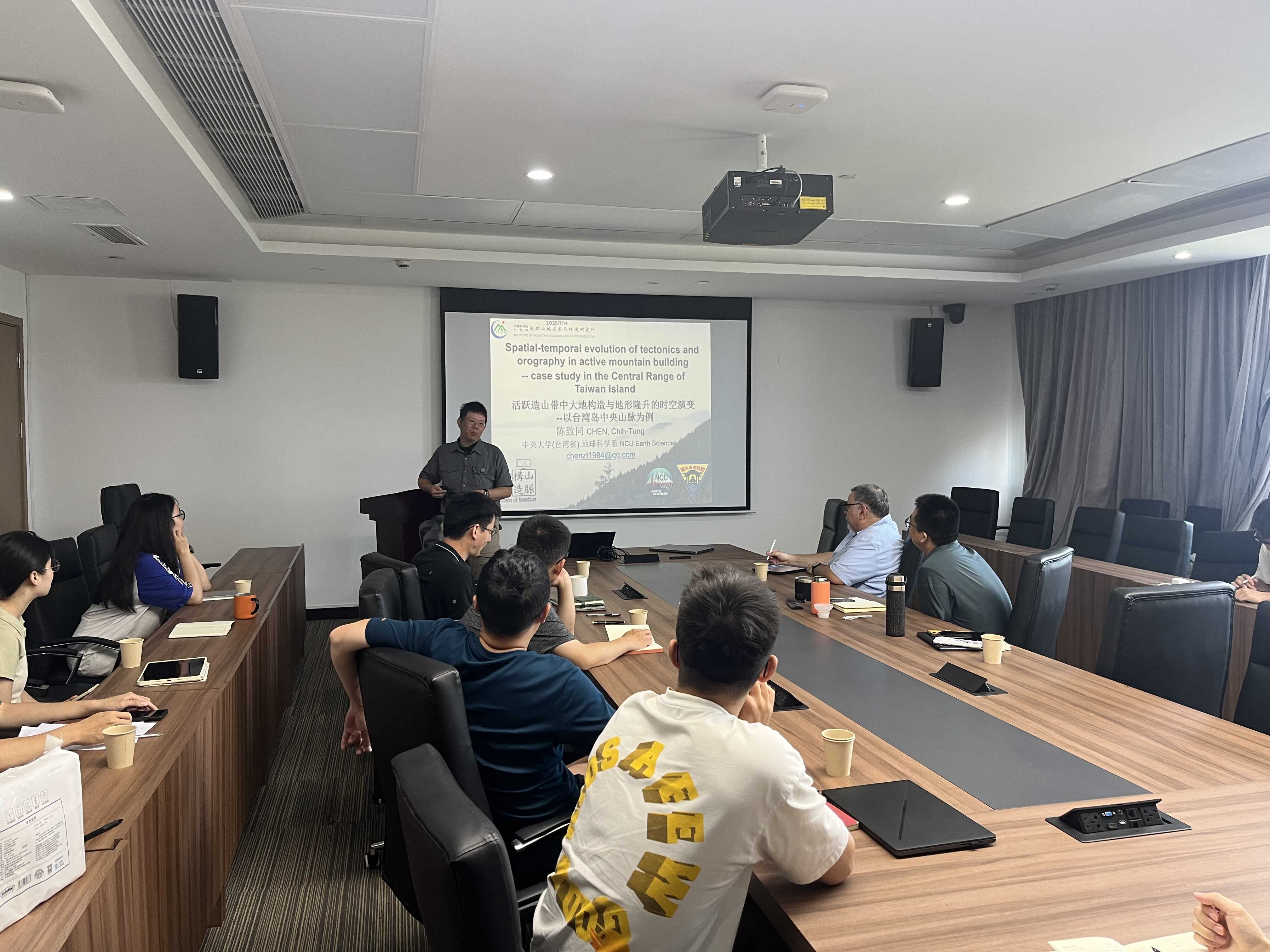 陈致同副教授作了题为“Spatial-temporal evolution of tectonics and orography in active mountain building”的报告。他以台湾中央山脉为例,系统阐述了活动造山带中构造、变质、地形隆升之间的时空演变过程。他还结合野外观测、变质变形记录、构造年代学与活动断层研究,阐释了造山运动与自然地理上的山脉形成二者之间的关系与动力学机制,相关成果发表于《Geology》《Tectonics》等国际权威期刊,引发与会学者热烈讨论。