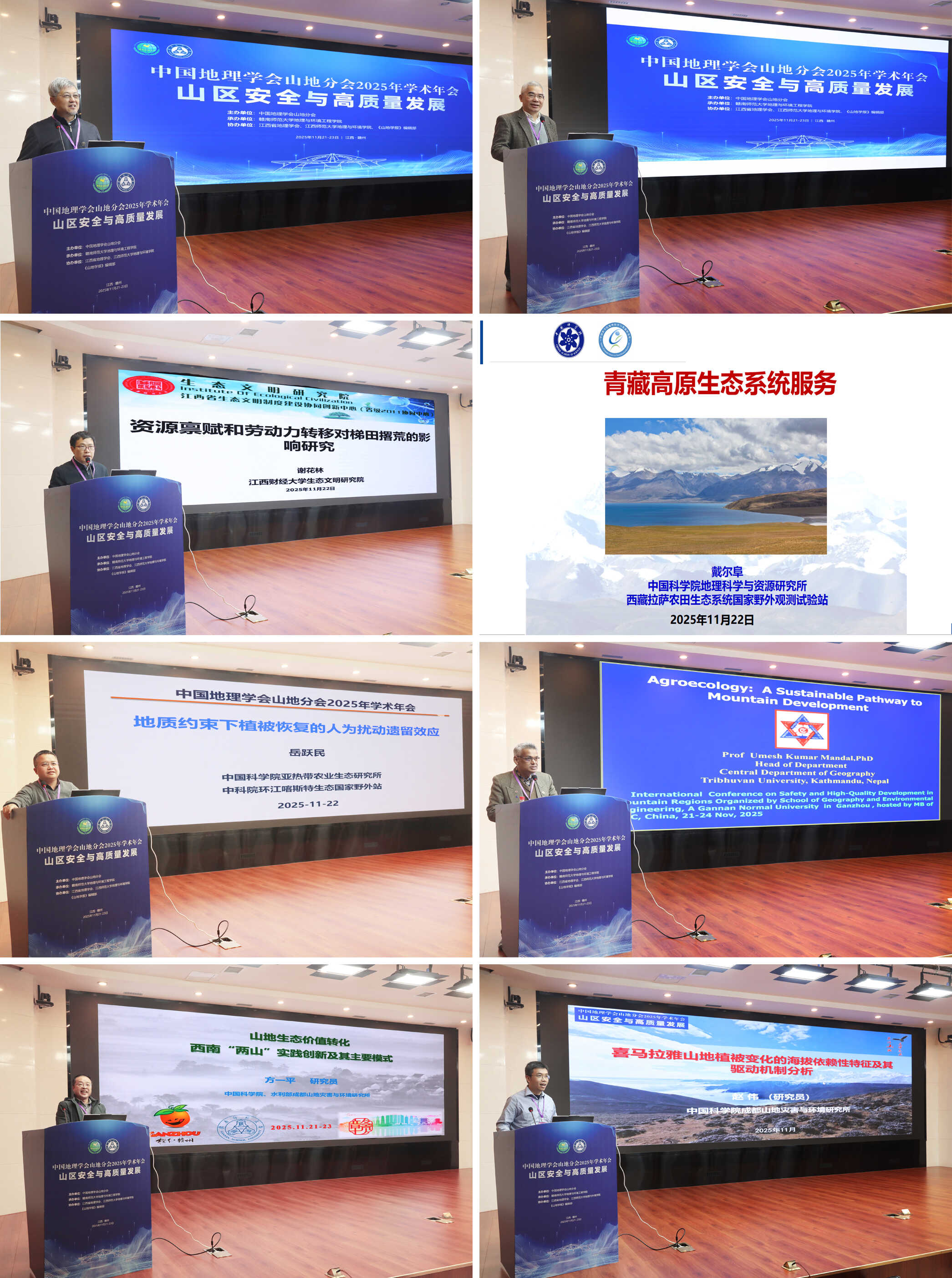 11月21日至23日,中国地理学会山地分会2025年学术年会在江西赣州举行。此次年会以“山区安全与高质量发展”为主题,吸引了来自国内外主要高校和科研院所的300余名专家学者及研究生参会。大会由中国地理学会山地分会主办,赣南师范大学地理与环境工程学院承办。赣南师范大学地理与环境工程学院院长陈永林教授主持大会开幕式,分会秘书长、中国科学院成都山地所熊东红研究员主持了闭幕式。