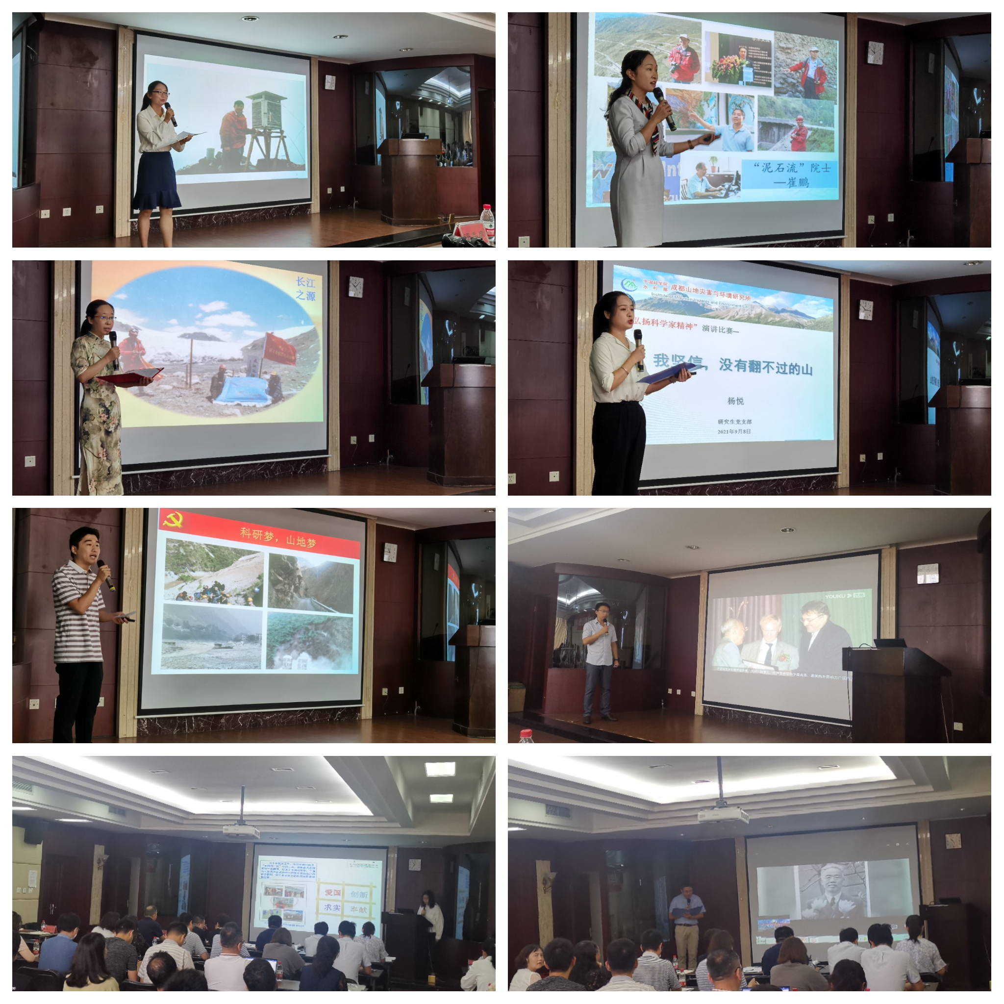 在比赛环节,参赛的每一个作品都讲述了一个动人的故事,而每一个故事背后则是主人公用忠诚和担当、智慧和才能、奉献和牺牲,谱写的一曲科学家赞歌。演讲者用各自的方式传播着科技工作者代表的精神和品格,诠释了山地科学发展的广度和高度,让现场所有观众享受了一场科学精神的“盛宴”。经过激烈的角逐,来自灾害一支部题为《中国泥石流研究的奠基人—唐邦兴》的演讲获一等奖,机关支部、环境支部和灾害二支部获二等奖,数字山地支部、支撑支部、山区发展支部和研究生党总支获三等奖。