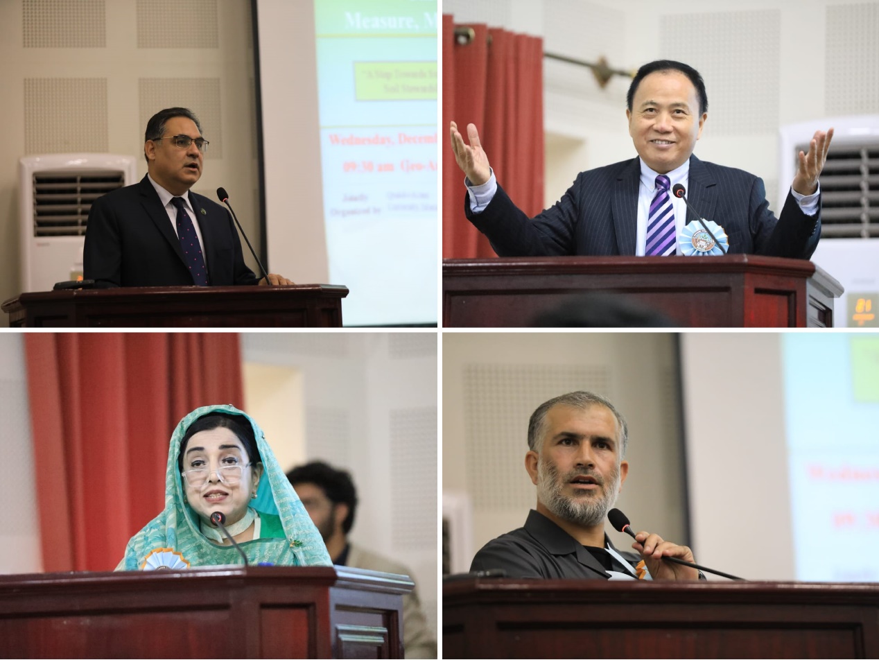 穆塔兹·沙阿在致辞中表达了对参与此次科普活动的专家学者们的感谢,希望通过专家学者的经验分享,能够进一步提升学生对土壤重要性的认识。舒贾乌尔·穆尔克·汗介绍了真纳大学自2015年起每年举办世界土壤日科普活动的传统,并详细回顾了历年来的活动亮点。洪天华介绍了中国在土壤保护方面的最新成就,特别是新疆塔克拉玛干沙漠“锁边”工程的显著效果,并呼吁大家珍惜土壤资源,共同保护环境。其他专家则分别就土壤保护等方面的工作,分享了他们的宝贵经验和研究成果。