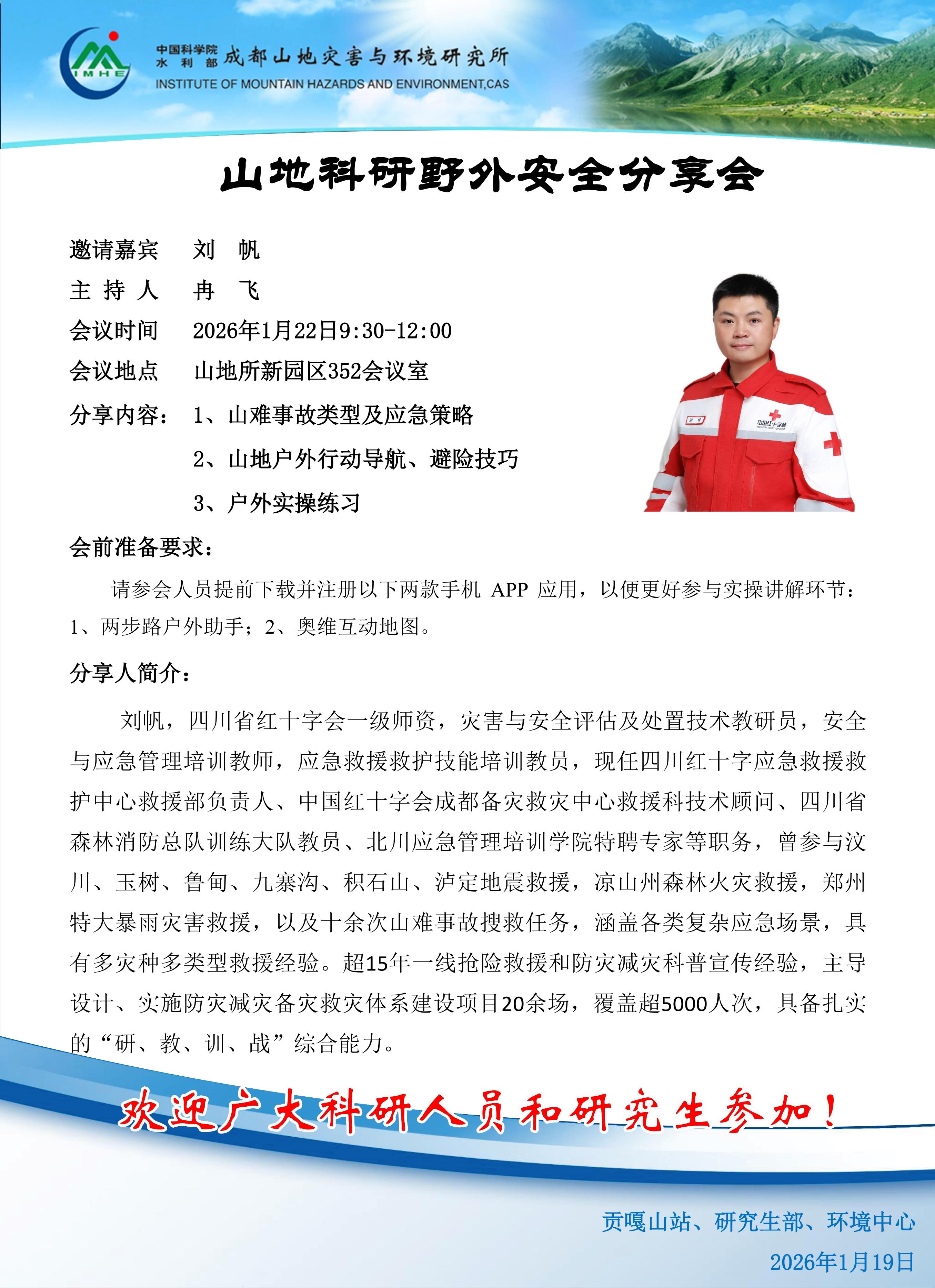 1月22日丨山地科研野外安全(四川红十字应急救援救护中心刘帆)