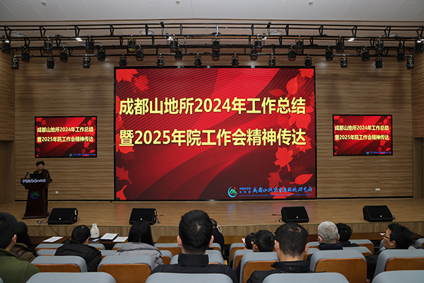 1月22日,成都山地所召开2024年度工作总结大会,传达学习中国科学院2025年度工作会议精神,总结梳理研究所2024年工作情况。所长文安邦、副所长苏立君出席会议。党委书记、副所长罗晓梅主持会议。