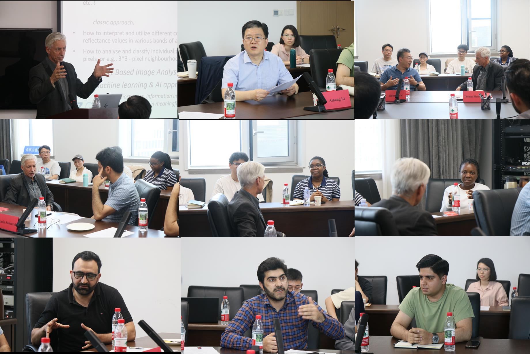 签约仪式后,Thomas Blaschke还作了题为“Geospatial workflows for environmental reporting and natural risk assessment”的特邀报告,分享了基于多源遥感观测数据立方体和面向对象分割等前沿技术构建体系下的山地森林生态系统监测、山地灾害风险评估、全球环境协议的技术支撑和实践等方面的创新成果。与会科研人员和研究生进行了热烈研讨。