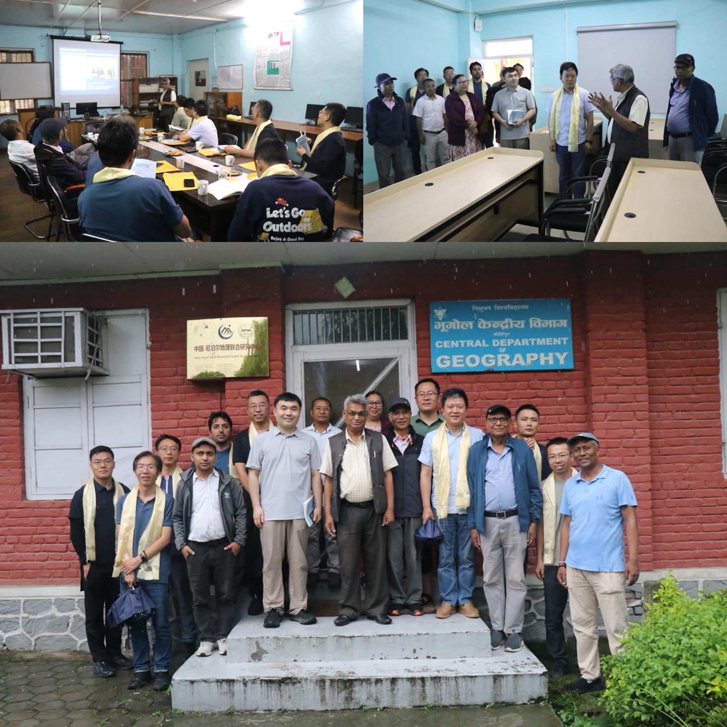 科考期间,团队还与尼泊尔社区发展与倡议论坛(CDAFN)承担的ICIMOD社区洪水预警合作项目进行了交流,访问了特里布文大学地理系,与尼泊尔地理学会理事长Narendra Raj Khanal教授、地理系主任Umesh Kumar Mandal教授等进行了座谈。