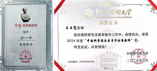 方一平研究员荣获“李佩优秀教师奖”,王玉宽研究员荣获“朱李月华优秀教师奖”。“李佩优秀教师奖”由中国科学院大学教育基金会于2018年设立,旨在纪念“中国应用语言学之母”李佩先生,每届评选约40名,用以表彰在教育教学中展现崇高奉献精神与卓越教学水平的教师。“朱李月华奖教金”由香港金利丰集团总裁、著名金融家朱李月华女士于2007年捐资设立,秉持促进内地科教事业发展的宗旨,每届评选100名。
