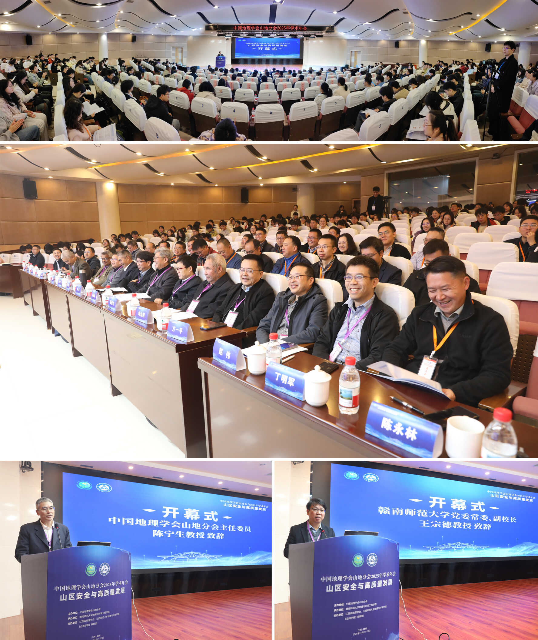 赣南师范大学党委常委、副校长王宗德教授代表承办单位向莅临大会的各位嘉宾表示诚挚欢迎,并简要介绍了赣南师范大学以及地理与环境工程学院的办学特点与研究特色,并希望此次会议广纳真知、汇聚资源,为学校未来的学术研究与学科建设拓展新思路、打开新局面。中国地理学会山地分会主任委员陈宁生教授在致辞中指出,在全球气候变化加剧、可持续发展挑战加深的时代背景下,山区安全与高质量发展已成为关系国家战略全局的重要议题,希望与会专家学者把握此次交流契机,在推动山地地理研究、服务国家“双碳”战略、助力乡村振兴与山区高质量发展等方面做出更大贡献。