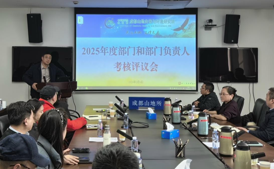 2月6日,成都山地所组织召开2025年度科研、管理和支撑部门考核及部门负责人述职评议会议。所长康世昌主持会议。党委书记、副所长谭多财,纪委书记周鹏浩出席。